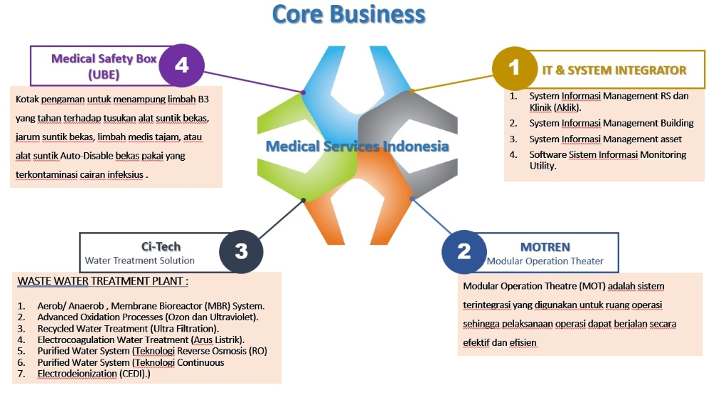 PT. Medikal Servisis Indonesia adalah perusahaan yang menyediakan layanan implementasi infrastruktur pada fasilitas kesehatan, sehingga penylenggara layanan kesehatan masyarakat dapat memberikan layanan dengan prima